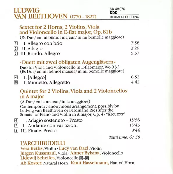 | Artista | Ludwig van Beethoven | L'Archibudelli |