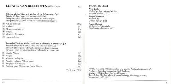 | Artista | Ludwig van Beethoven | Anner Bylsma | L'Archibudelli | Vera Beths | Jürgen Kussmaul |