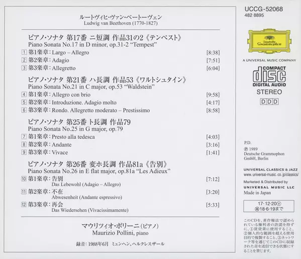 | ピアノ・ソナタ 第17番 ニ短調 作品31の2《テンペスト》= Piano Sonata No.17 In D Minor, Op. 31-2 "Tempest" | ||