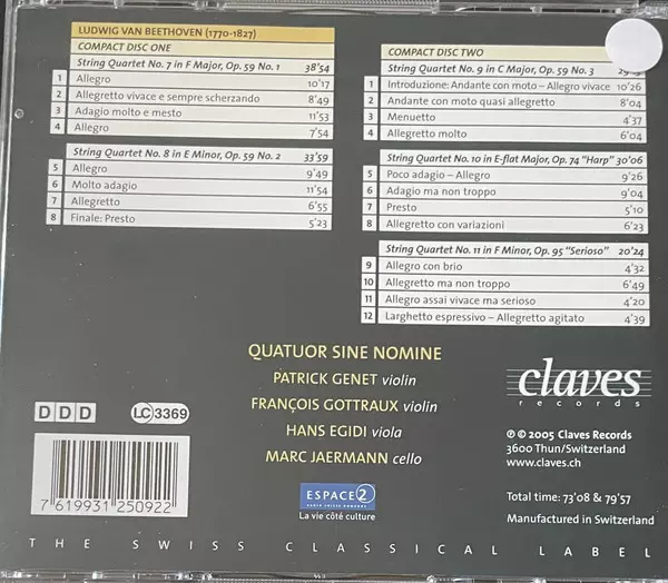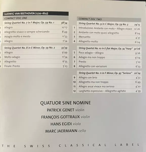 | Artista | Ludwig van Beethoven | Quatuor Sine Nomine |