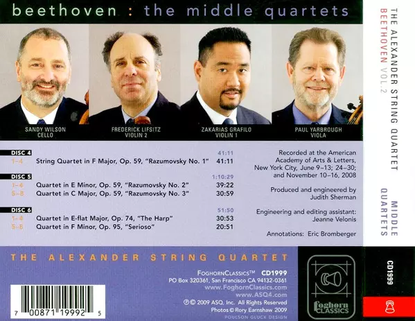 | Artista | Ludwig van Beethoven | Alexander String Quartet |