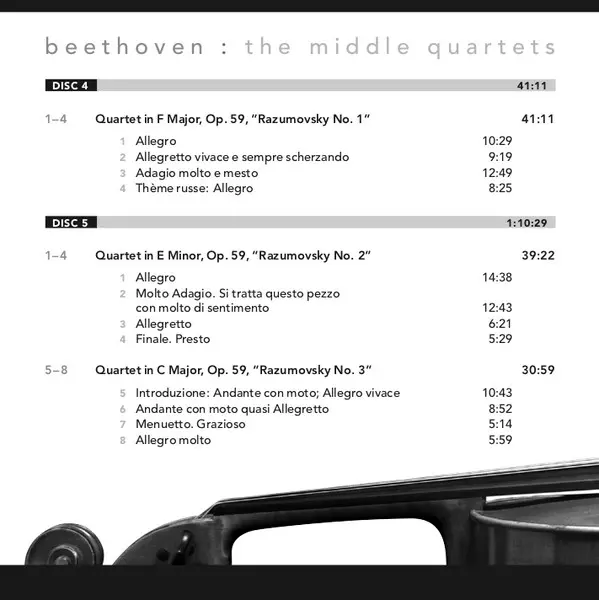 | Quartet In F Major, Op.59, "Razumosvsky No. 1" | 41:11 min | |