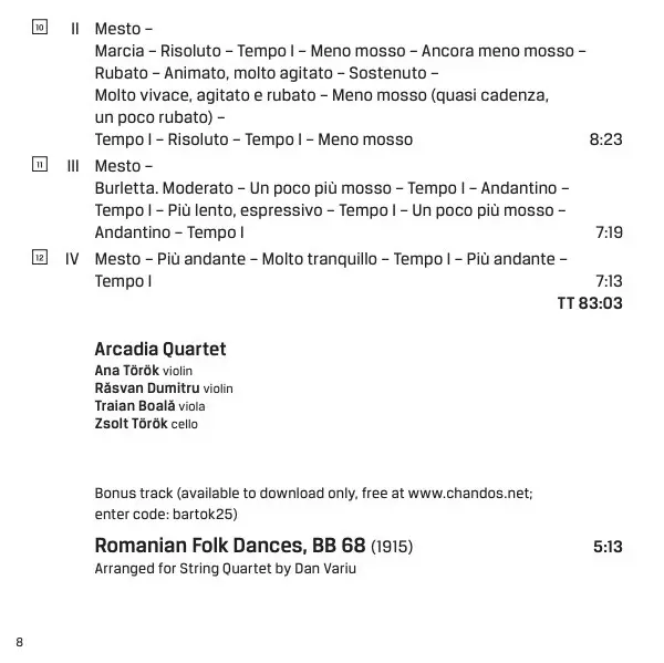 | Artista | Béla Bartók | Arcadia String Quartet |