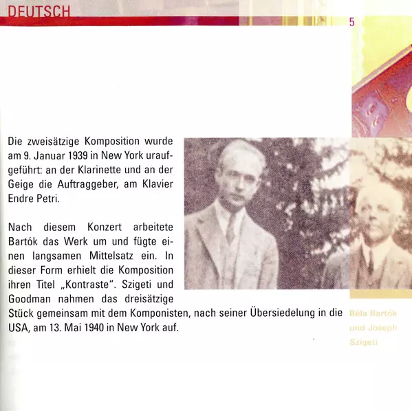 Béla Bartók: Kontraste / Mikrokosmos (Auszüge) versión en CD en remasterizado edición. Esta edición en concreto se lanzó en Europa en la editorial Documents el día 2. octubre 2006. Álbum abarca todos los géneros Música clásica y Modernism.