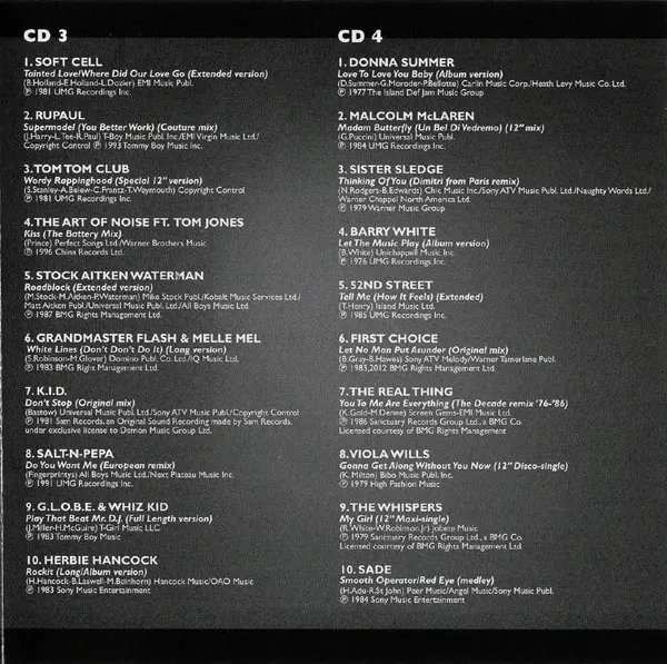 | 3-6 | Grandmaster Flash & Melle Mel: White Lines (Don't Don't Do It, Long Version) | 7:34 min | |