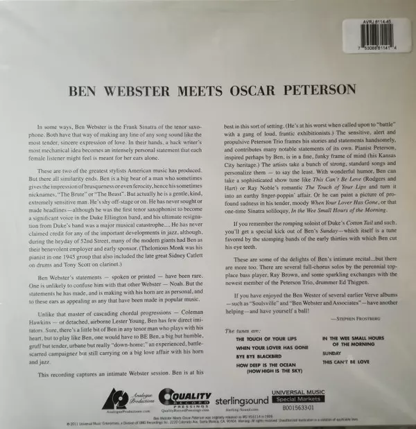 | Título | Ben Webster Meets Oscar Peterson LTD |