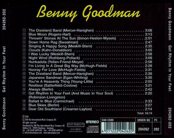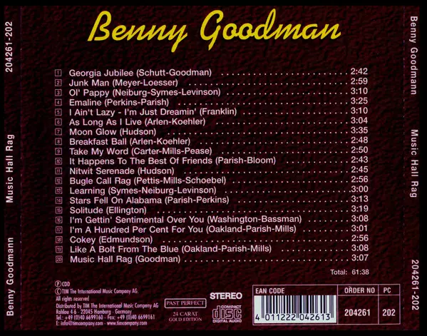 Benny Goodman: Portrait versión en 10CD en estándar edición. Esta edición en concreto se lanzó en Alemania en la editorial Past Perfect 24 Carat Gold Edition. Álbum puede clasificarse como género Jazz. Box.