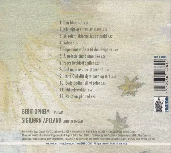 | Artista | Berit Opheim | Sigbjørn Apeland |