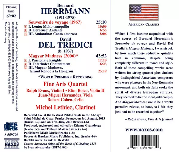 | Artista | Bernard Herrmann | The Fine Arts Quartet | David Del Tredici | Michel Lethiec |