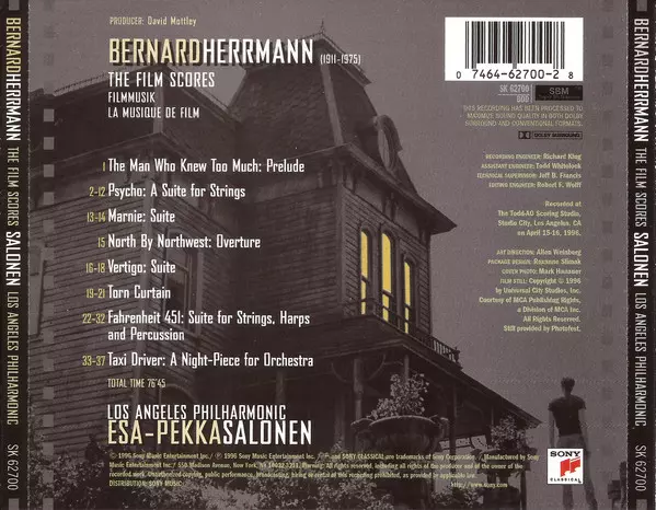 | Artista | Los Angeles Philharmonic Orchestra | Bernard Herrmann | Esa-Pekka Salonen |
