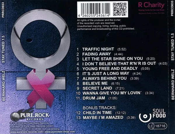 Bernhard Welz: Stay Tuned 1.5 versión en CD en estándar edición. Esta edición en concreto se lanzó en Alemania en la editorial Pure Rock Records el día 7. octubre 2016. Álbum abarca todos los géneros Rock y Hard Rock.