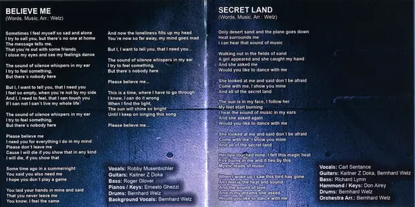 Drums, Orchestrated By Bernhard Welz | Organ, Keyboards Don Airey | Vocals Carl Sentance | Written-By, Music By Bernhard Welz