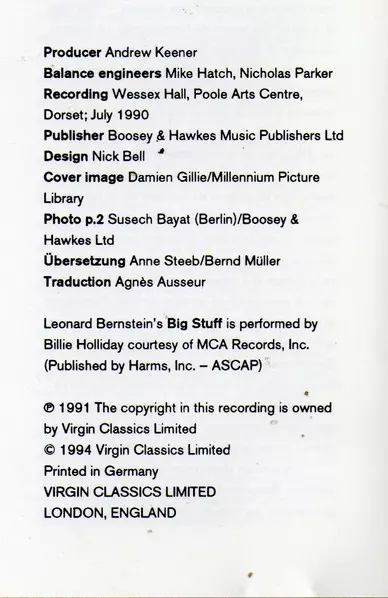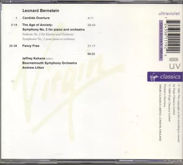 | Artista | Leonard Bernstein | Bournemouth Symphony Orchestra | Jeffrey Kahane | Andrew Litton |