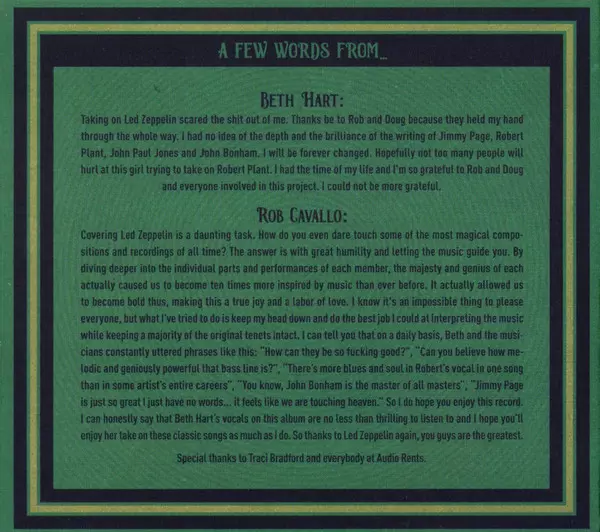 Beth Hart: A Tribute To Led Zeppelin versión en CD en estándar edición. Esta edición en concreto se lanzó en Europa, EE.UU. y Canadá en la editorial Provogue el día 25. febrero 2022.