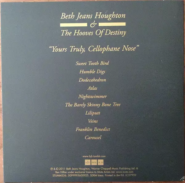 Beth Jeans Houghton & The Hooves Of Destiny: Yours Truly, Cellophane Nose versión en vinilo LP/CD en estándar edición. Esta edición en concreto se lanzó en Europa en la editorial Mute el día 14. febrero 2012. Álbum abarca todos los géneros Rock y Art Rock. 180g LP + CD.