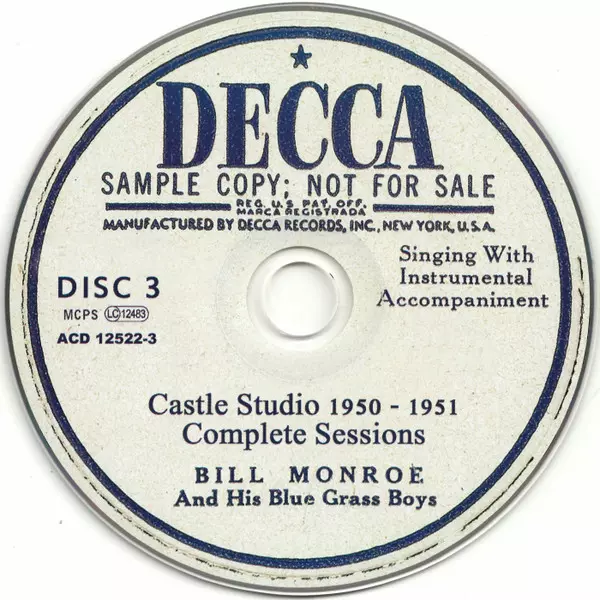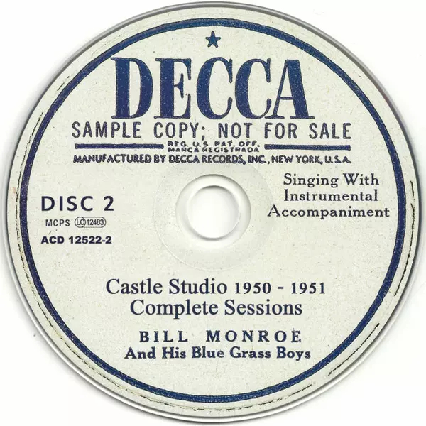 Bill Monroe & His Blue Grass Boys: Castle Studio 1950 - 1951 (Complete Sessions) versión en 5CD en estándar edición. Esta edición en concreto se lanzó en Europa en la editorial RWA (richard weize archives) el día 24. febrero 2017. Álbum abarca todos los géneros Folk, World, & Country y Bluegrass. Digibook.