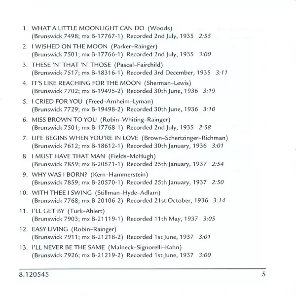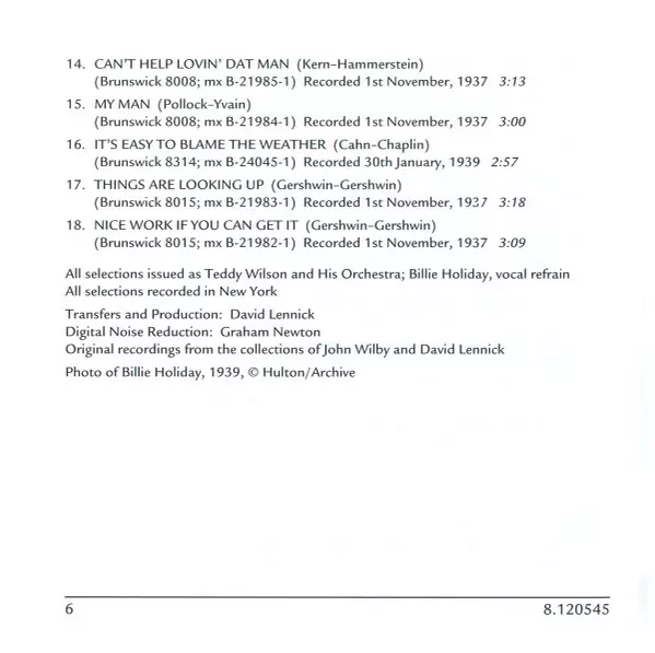 | Artista | Billie Holiday | Teddy Wilson And His Orchestra |