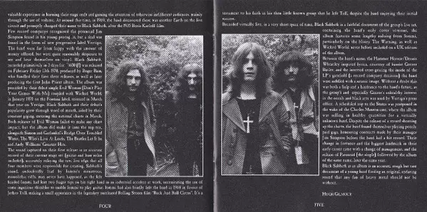 Čtyři kluci z Birminghamu šli na jeden den do studia a nahráli celé album, což byl debut v této roli i pro producenta. Těžko tomu uvěřit, ale právě tehdy se zrodil heavy metal. Toto přelomové album z roku 1970 je považováno za první heavy metalové album, které kdy bylo komerčně vydáno. Album se v USA stalo platinovým a dodnes vzdoruje všem předp...