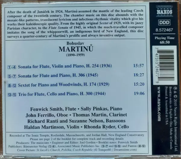 | Artista | Bohuslav Martinů | Fenwick Smith | Thomas Martin | Richard Ranti | Sally Pinkas | John Ferrillo | Suzanne Nelson | Haldan Martinson | Rhonda Rider |