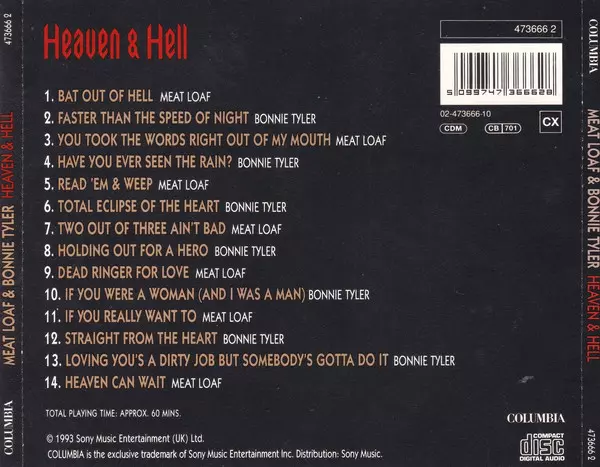Meat Loaf and Bonnie Tyler on one album - this exceptional combination of two world-class artists has its own special magic. The album "Heaven & Hell" features two of the most iconic voices on the music scene performing their best-known songs. By the way, most of Bonnie Tyler and Meat Loaf's hits were written by songwriter Jim Steinman, who can ...