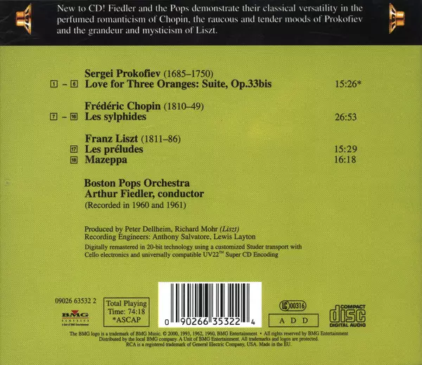 | Artista | Frédéric Chopin | Sergei Prokofiev | Franz Liszt | Boston Pops Orchestra | Arthur Fiedler |
