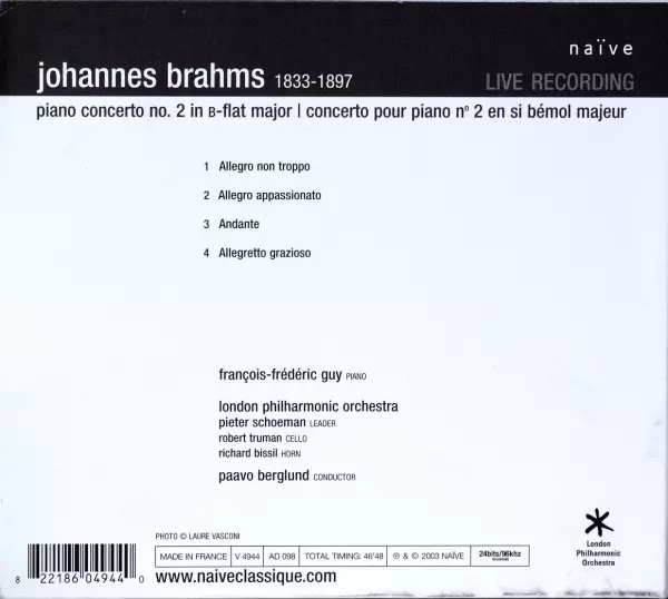 | Artista | Johannes Brahms | Paavo Berglund | London Philharmonic Orchestra | Francois-frederic Guy |