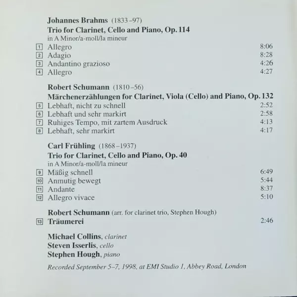 | Artista | Johannes Brahms | Robert Schumann | Steven Isserlis | Stephen Hough | Michael Collins | Carl Frühling |
