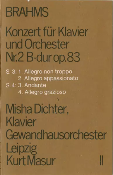 | Artista | Johannes Brahms | Gewandhausorchester Leipzig | Kurt Masur | Misha Dichter |
