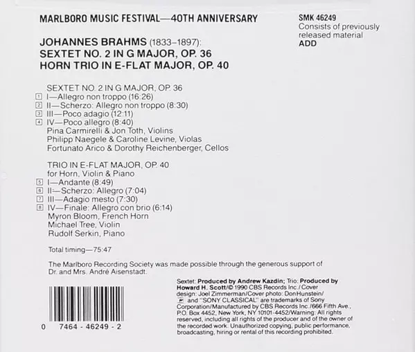 | Artista | Johannes Brahms | Rudolf Serkin | Michael Tree | Myron Bloom |
