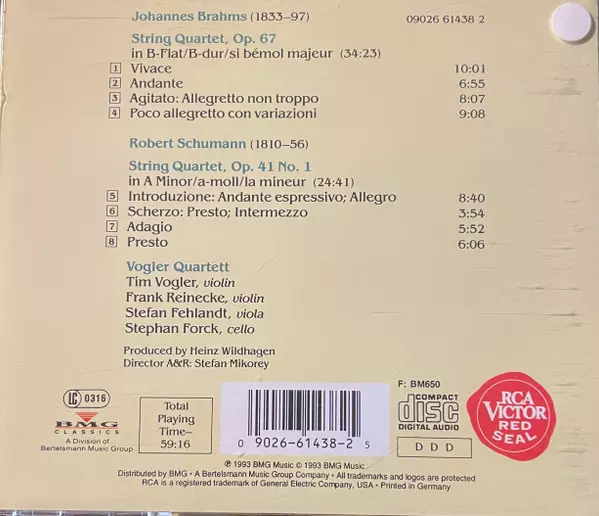 | Artista | Johannes Brahms | Robert Schumann | Vogler Quartett |