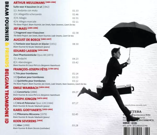 Bram Fournier: Belgian Trombone ID versión en CD en estándar edición. Esta edición en concreto se lanzó en Países Bajos en la editorial Etcetera (3) el día 8. mayo 2020. Álbum abarca todos los géneros Música clásica, Música de marcha, Modernism, Romance, Contemporary classical y Brass Band.