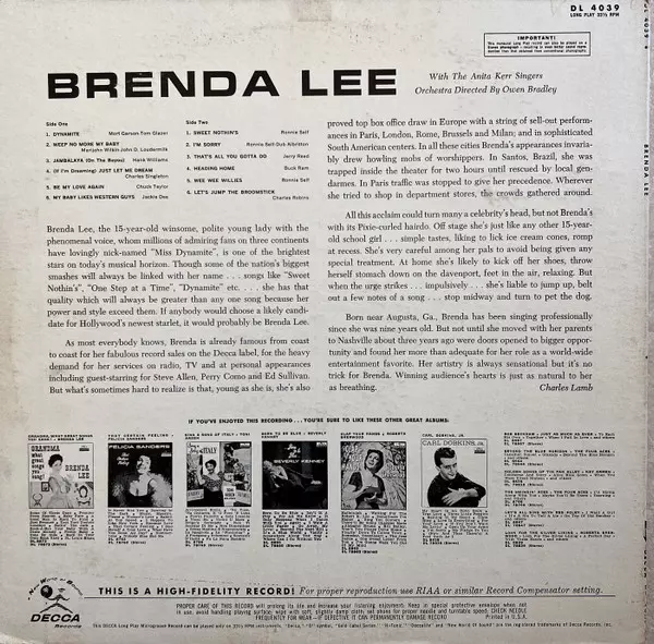 | Artista | Brenda Lee |