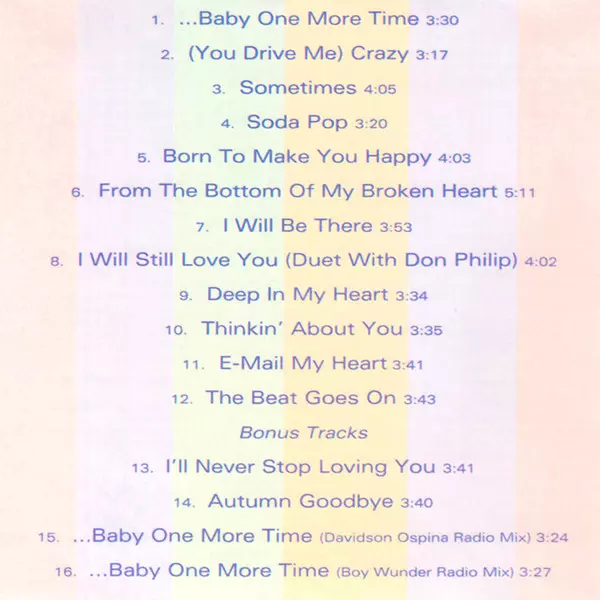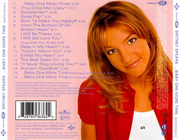 A flawless pop album of the best quality, full of catchy melodies and feel-good songs at their best - that's how Britney's first album was introduced to fans in 1999, who still knew her as the host of the Disney Channel's "Mickey Mouse Club". The teen pop anthems "...Baby, One More Time", "(You Drive Me) Crazy", "From The Bottom Of My Broken Hea...