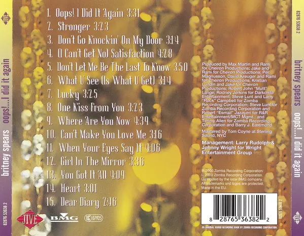 Britney Spears: Oops!...I Did It Again versión en CD en estándar edición. Esta edición en concreto se lanzó en Europa en la editorial Jive en colaboración con BMG el día 1. septiembre 2006.