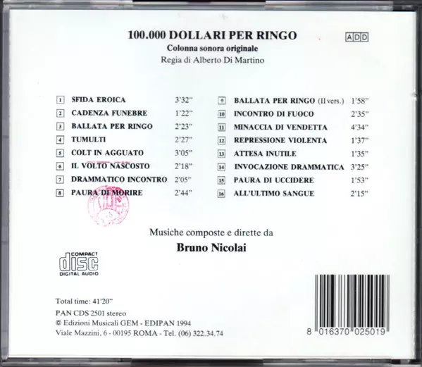 | Título | 100.000 Dollari Per Ringo (Colonna Sonora Del Film) |