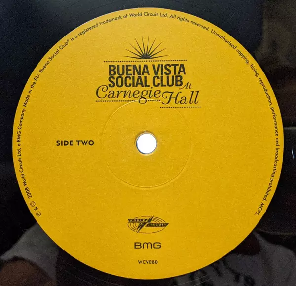 Buena Vista Social Club: Buena Vista Social Club At Carnegie Hall versión en vinilo 2LP en estándar edición. Esta edición en concreto se lanzó en EE.UU. en la editorial World Circuit el día 7. noviembre 2008.