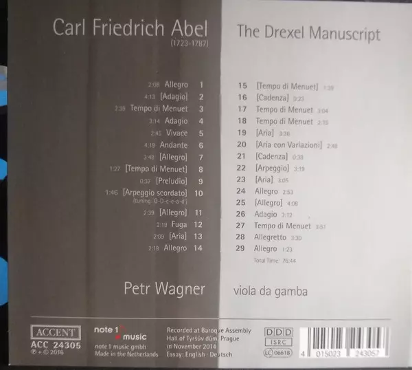 | Artista | Carl Friedrich Abel | Petr Wagner |