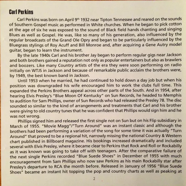 Carl Perkins was an American musician and a pioneer of rockabilly music, a blend of rhythm and blues and country music. Born on April 9, 1932, in Tiptonville, Tennessee, Perkins grew up influenced by the gospel music he heard in church and the country music popular in his rural com...