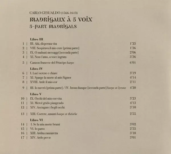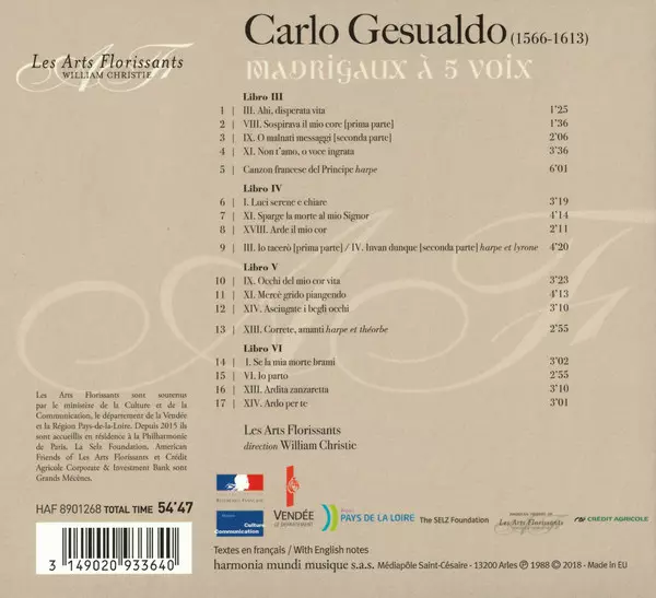 | Artista | William Christie | Les Arts Florissants | Carlo Gesualdo |