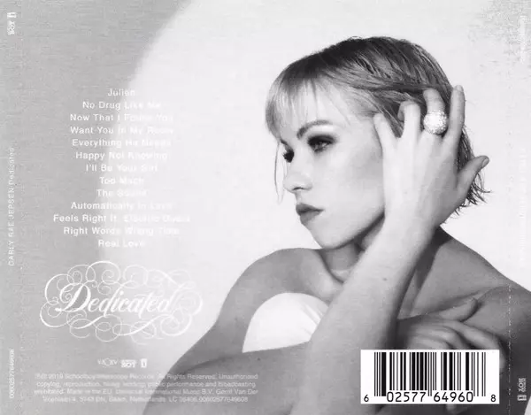 Dedicated is the fourth album by Canadian singer Carly Rae Jepsen, and will be released on May 17, 2019. The album is primarily inspired by disco music performed by ABBA, the Bee Gees and Donna Summer, and was carefully curated from a selection of nearly 200 songs Jepsen has written over the past three years.