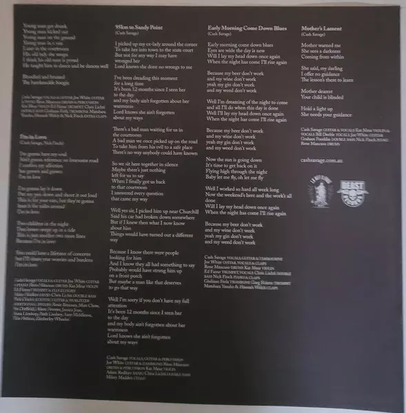 Banjo Adam Redfern | Cello Mikey Madden | Double Bass Chris Lichti | Drums, Percussion Rene Mancuso | Guitar, Electric Organ [Hammond] Joe White (15) | Mixed By Nick Finch | Recorded By, Mixed By Nao Anzai | Violin Kate Mear | Written-By, Vocals, Guitar, Percussion Cash Savage
