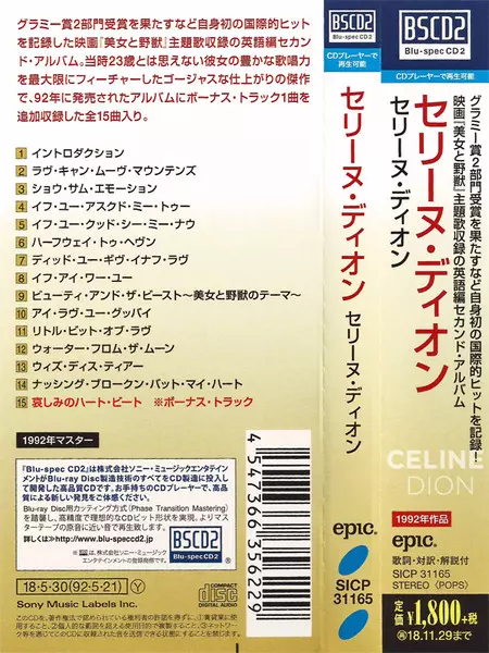 Céline Dion: Celine Dion versión en CD en estándar edición. Esta edición en concreto se lanzó en Japón en la editorial Epic el día 8. junio 2018.