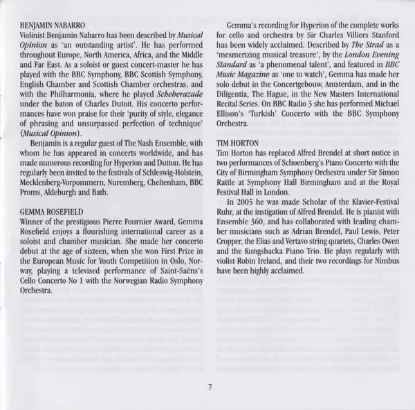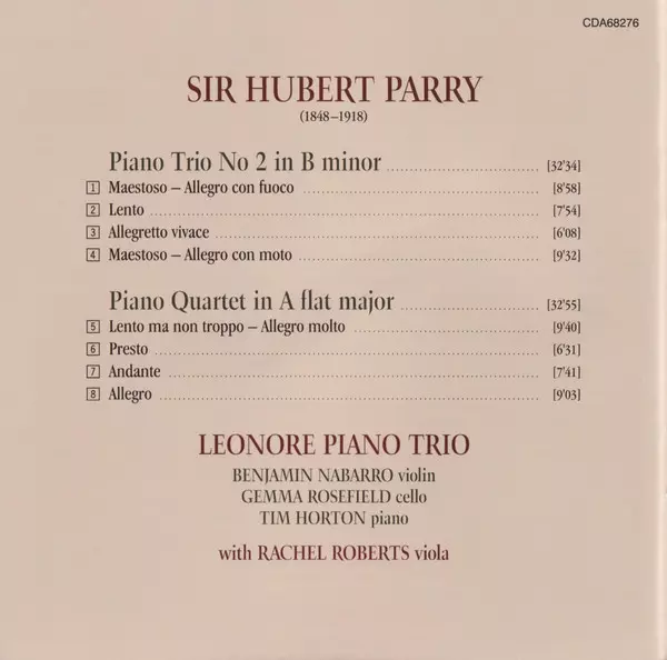 | Artista | Charles Hubert Hastings Parry | Rachel Roberts | Leonore Piano Trio |