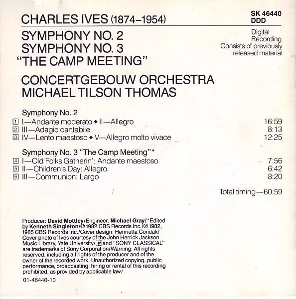 | Artista | Concertgebouworkest | Charles Ives | Michael Tilson Thomas |