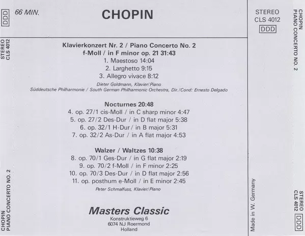 | Artista | Frédéric Chopin | Süddeutsche Philharmonie | Peter Schmalfuß | Dieter Goldmann |