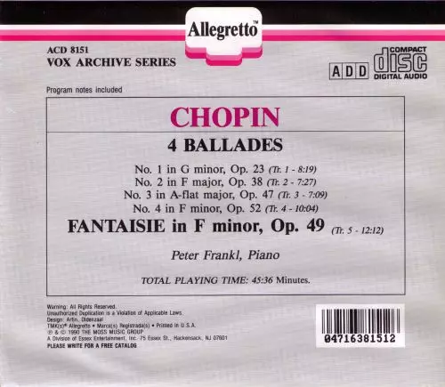 | Título | 4 Ballades / Fantaisie In F Minor |