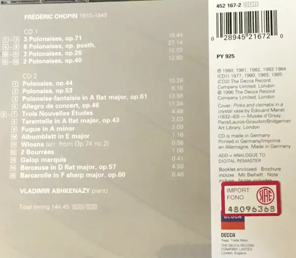 | Artista | Frédéric Chopin | Vladimir Ashkenazy |