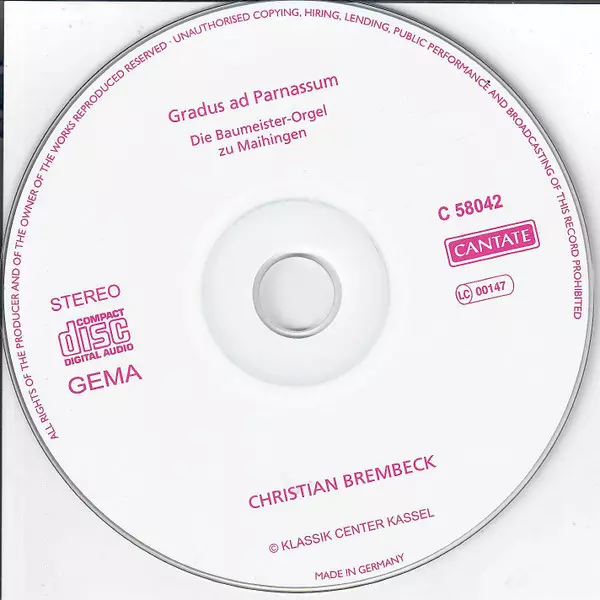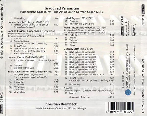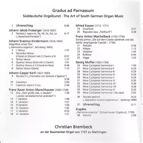 | Título | Gradus Ad Parnassum / Süddeutsche Orgelkunst • The Art Of South German Organ Music |