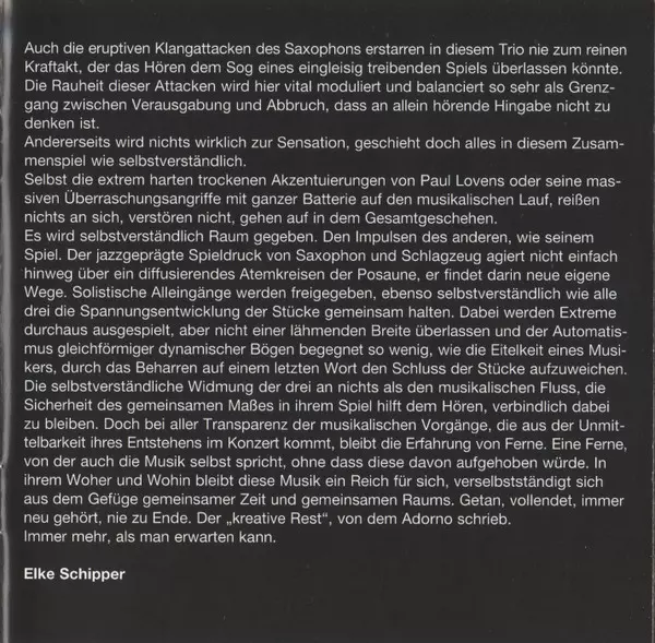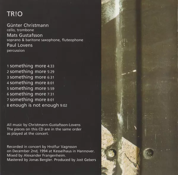 | Artista | Mats Gustafsson | Paul Lovens | Günter Christmann | TR!O |