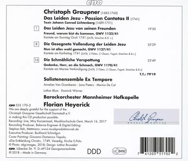 | Artista | Christoph Graupner | Florian Heyerick | Ex Tempore | Mannheimer Hofkapelle |